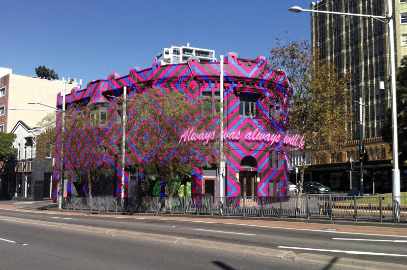 This project was the result of a successful competition entry for Streetware 2012, City of Sydney with the artist Reko Rennie. We approached Reko Rennie with the view to submit a façade treatment for a proposal for this significant but non-descript building in one of the main public spaces of Sydney. My roll included tender submission, design development, documentation and project management.